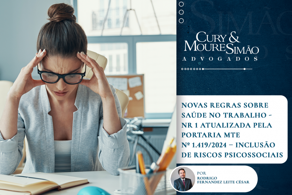 Cury e Moure Simão Advogados Por Rodrigo Fernandez Leite César As novas regras da NR-1, que consiste em um conjunto de direitos e deveres de empregadores e empregados para a promoção da saúde no ambiente laboral, editadas pela Portaria TEM nº 1.419/2024 entrará em vigor em 24 de maio de 2025. Pelas novas regras as […]